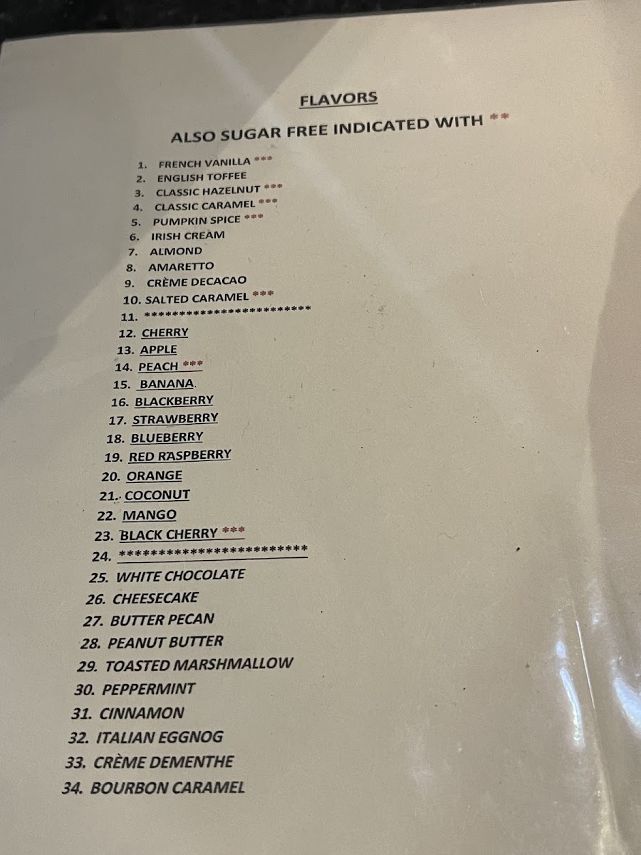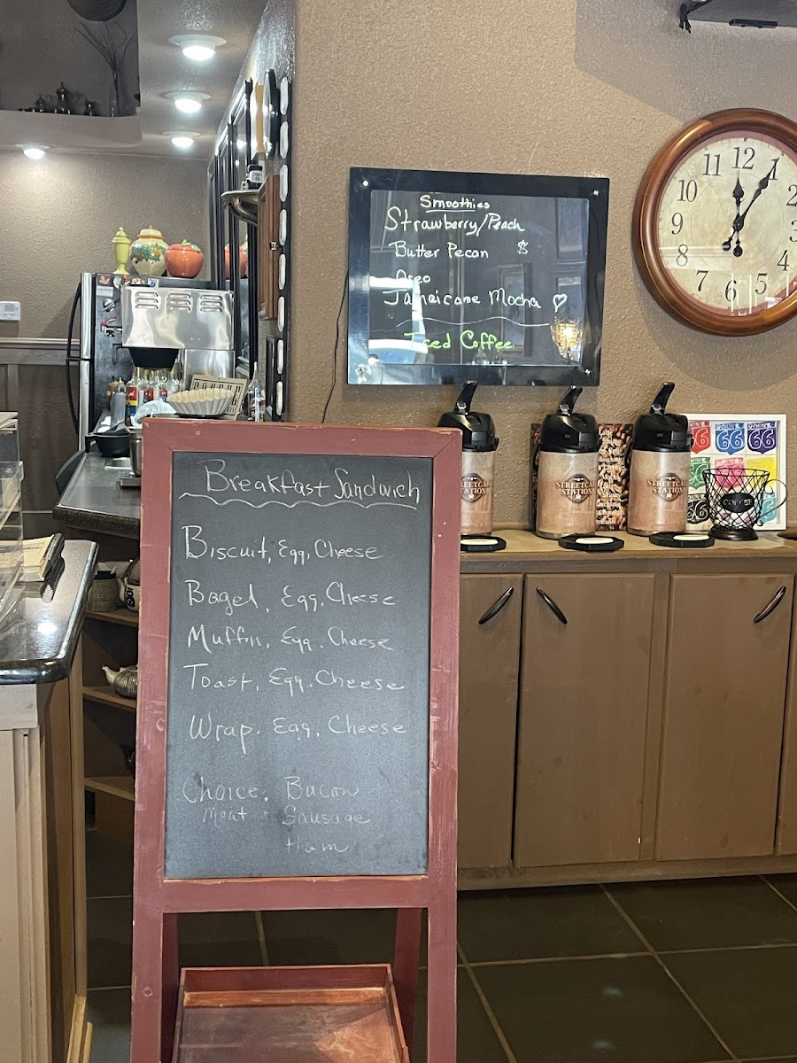 The coffee selection includes handcrafted beverages with unique flavors like Butter Pecan and Irish Cream. For those seeking something refreshing, their smoothies range from classic Strawberry to tropical Mango. The warm, inviting atmosphere is complemented by an array of homemade dishes.